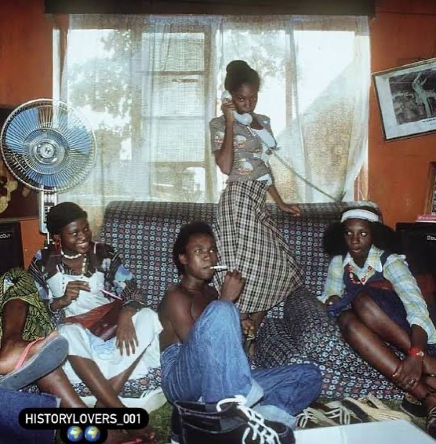 A second photograph from the same period also captures Yeni posing with a classic landline telephone, surrounded by family friends. Together, these images paint a vivid picture of life inside the legendary Kuti compound — a space where music, culture, rebellion, and creativity thrived side by side.