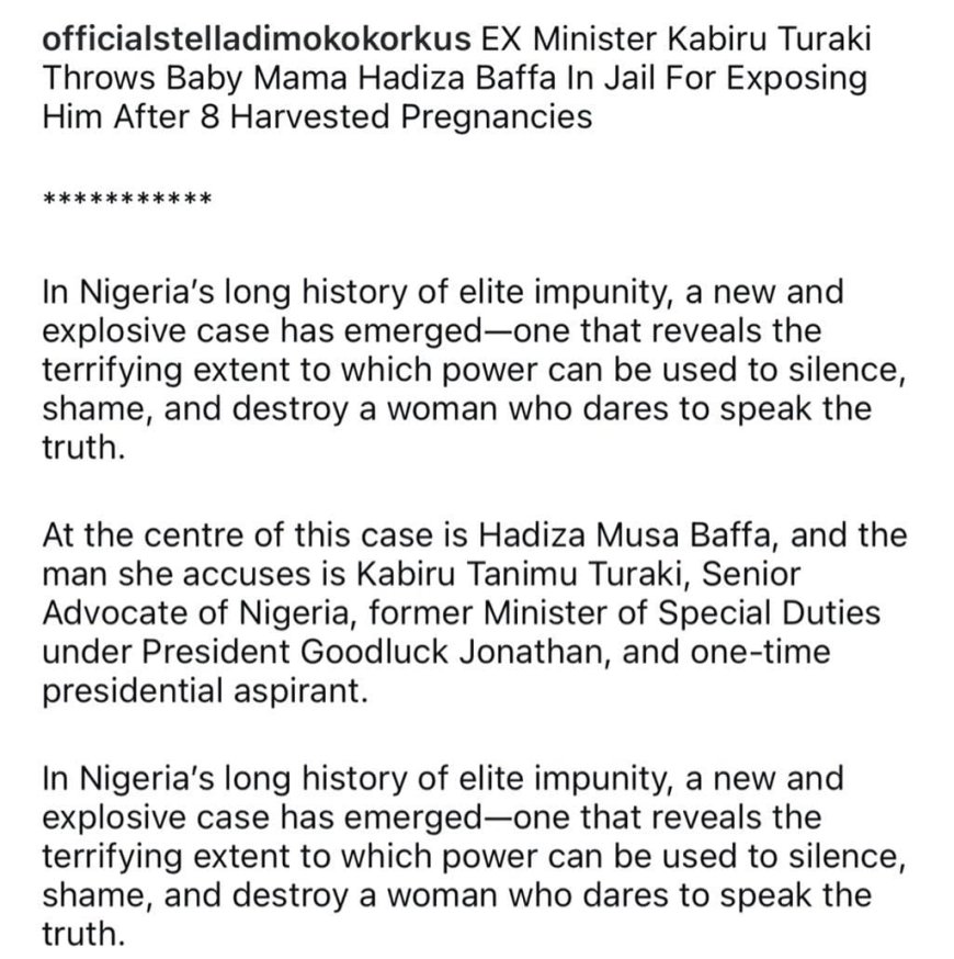Senior Advocate of Nigeria and former Minister of Special Duties, Kabiru Turaki, is at the center of serious allegations by Hadiza Baffa, who claims he coerced her into undergoing multiple abortions allegedly for ritual purposes while also using her as a sexual partner.