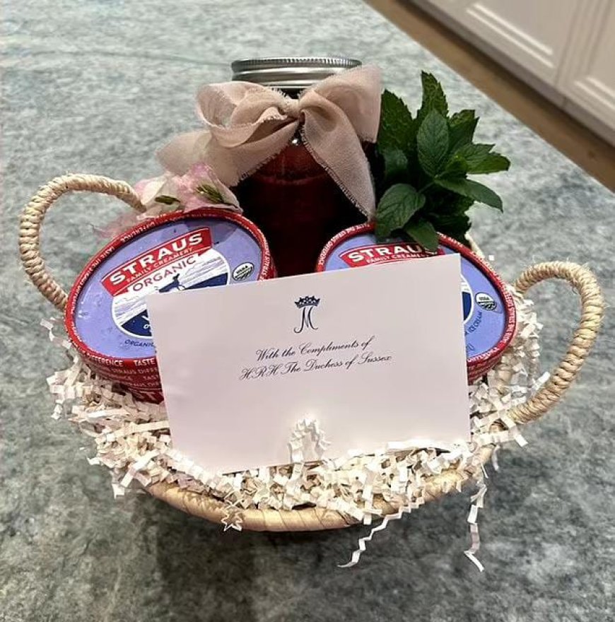 After stepping down from royal duties in 2020, Meghan and Prince Harry had agreed not to use their HRH titles for commercial purposes. However, the basket, which was sent to Jamie during a visit from her in-laws, featured Meghan’s homemade strawberry jam along with a variety of other products, including organic ice cream and flowers. The card, which showcased Meghan’s royal title, has since gained attention online after being featured on Jamie’s podcast